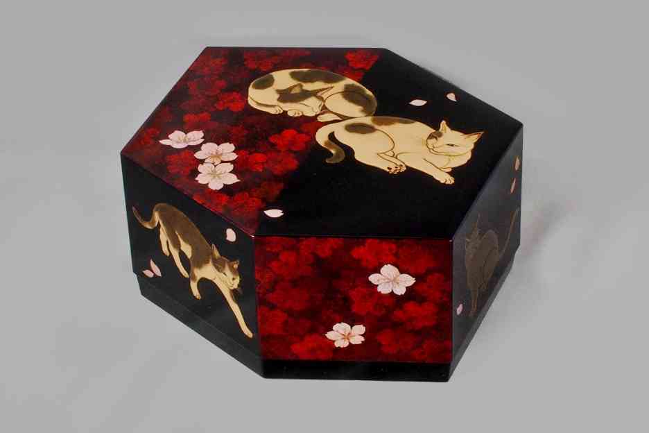 蓋を取ると身側面に砥ぎ出し蒔絵で川の流れに魚影が見えます