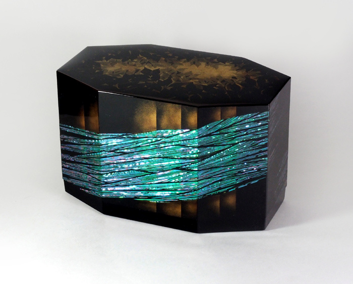 清々と流れ、翠に透ける渓流を螺鈿で表現しました。